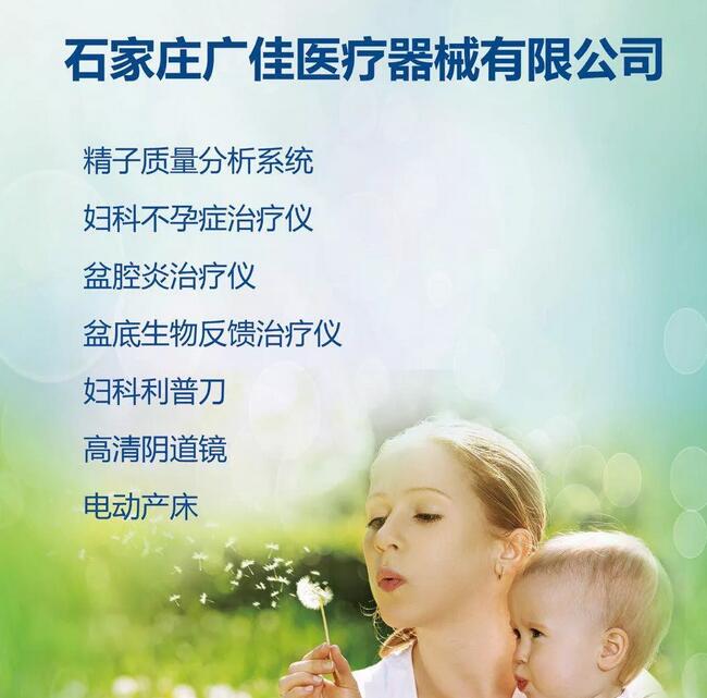 石家莊廣佳醫(yī)療器械有限公司是以從事婦科治療設(shè)備和不孕不育設(shè)備為主的專業(yè)公司。公司成立于2009年4月,從成立之初就本著做精做大的原則,全力對婦科設(shè)備和不孕不育設(shè)備的功能,理療效果進(jìn)行研究,爭取做市場上經(jīng)典,實用的婦科和不孕不育理療設(shè)備。多年的專業(yè)經(jīng)營使公司聚集了強大的專業(yè)優(yōu)勢,經(jīng)過數(shù)萬家醫(yī)院和數(shù)億計病例的檢驗、積累和信息反饋,公司改進(jìn)了原石家莊華行醫(yī)療器械有限公司生產(chǎn)的FZY—III型婦科診斷治療儀(輸卵管通液治療儀)。新一代儀器憑借技術(shù)創(chuàng)新贏得市場,贏得了廣大客戶的認(rèn)可;憑借優(yōu)質(zhì)產(chǎn)品人性化設(shè)計,榮獲“河北省特色醫(yī)療產(chǎn)品重點推廣單位”的稱號。在多年的努力和篩選下2011年起,我們代理了多家醫(yī)療廠家的優(yōu)質(zhì)產(chǎn)品。 公司主要代理產(chǎn)品: FZY-III型婦科診斷治療儀、精子質(zhì)量分析儀等 北京冠邦科技有限公司-河北省總代理 產(chǎn)品:婦科沖洗器、盆腔炎治療儀、臭氧治療儀、微創(chuàng)引流儀、無痛分娩 北京優(yōu)美高電子科技有限公司-河北省總代理 產(chǎn)品:婦科LEEP刀、高頻電刀系列 北京萊寶得科貿(mào)有限公司-河北省總代理 產(chǎn)品:數(shù)碼電子陰道鏡、紅外乳腺診斷儀、乳腺治療儀、宮腔鏡 海南一鴻實業(yè)發(fā)展有限公司-河北省總代理 產(chǎn)品:婦舒康 江蘇舜宇醫(yī)療器械有限公司-河北省總代理 產(chǎn)品:陰道自檢鏡 廣州索諾星科技有限公司-河北省總代理 產(chǎn)品:UBox-9超聲盒診斷系統(tǒng)、U8型(UTouch-8)超聲診斷儀、彩超